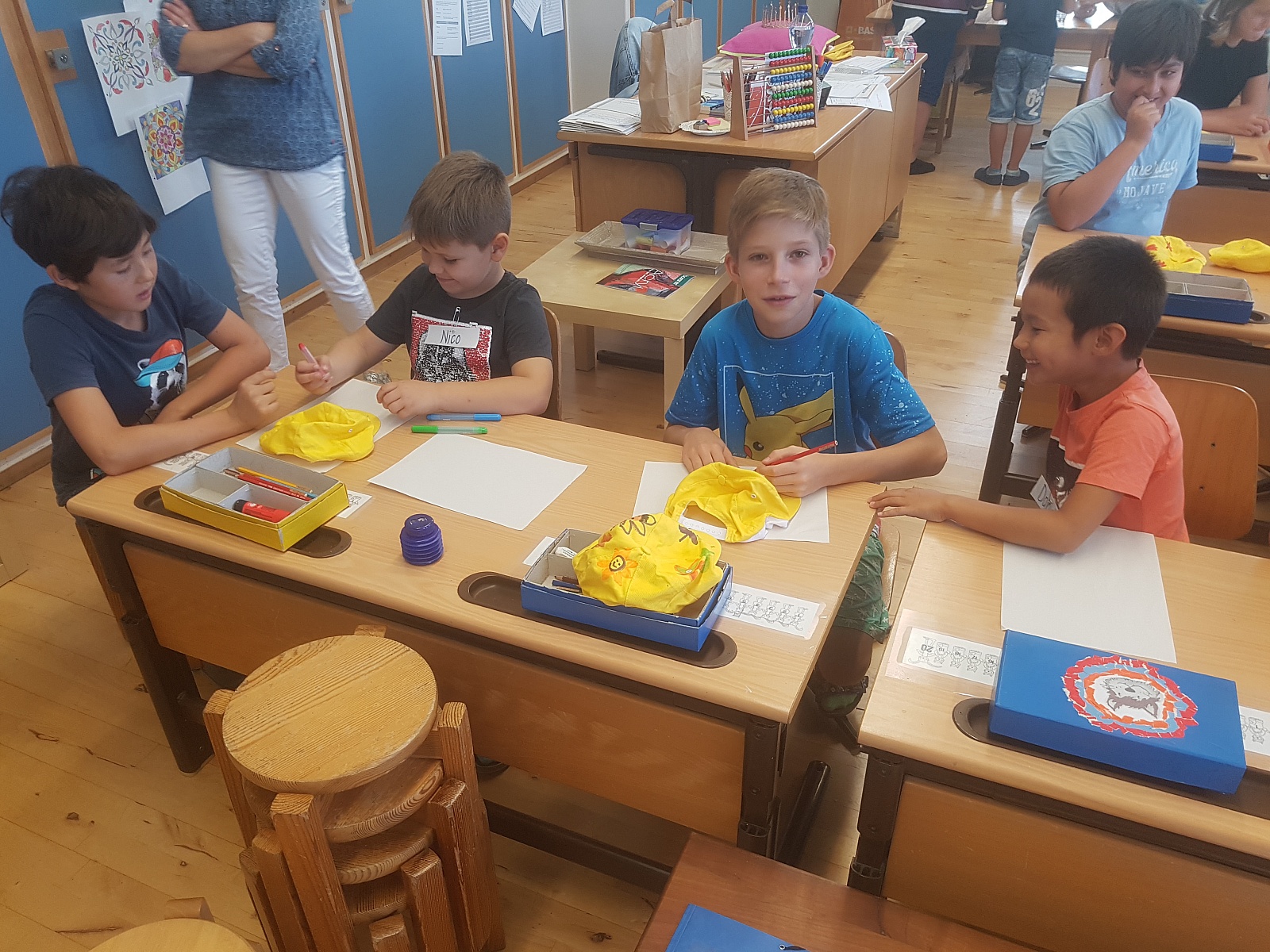 6a hilft 1a beim Mützendekorieren