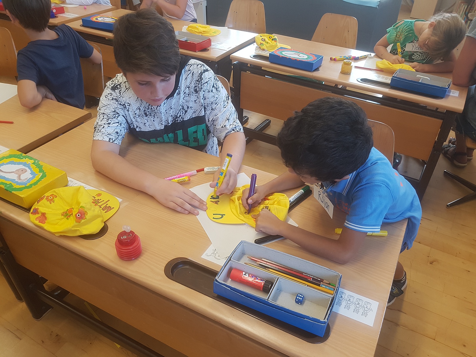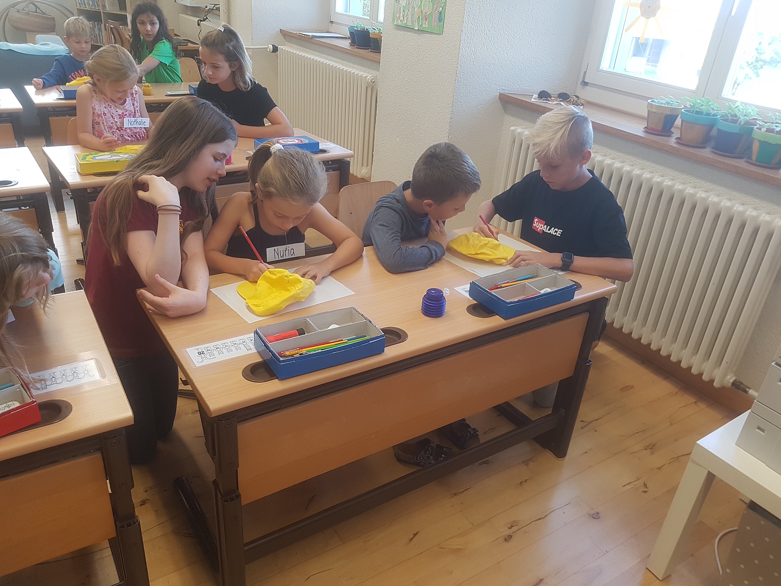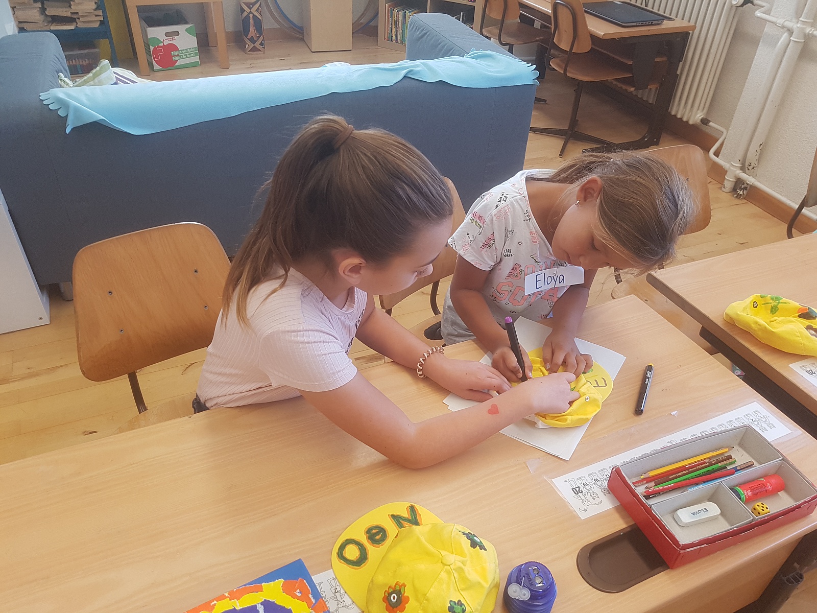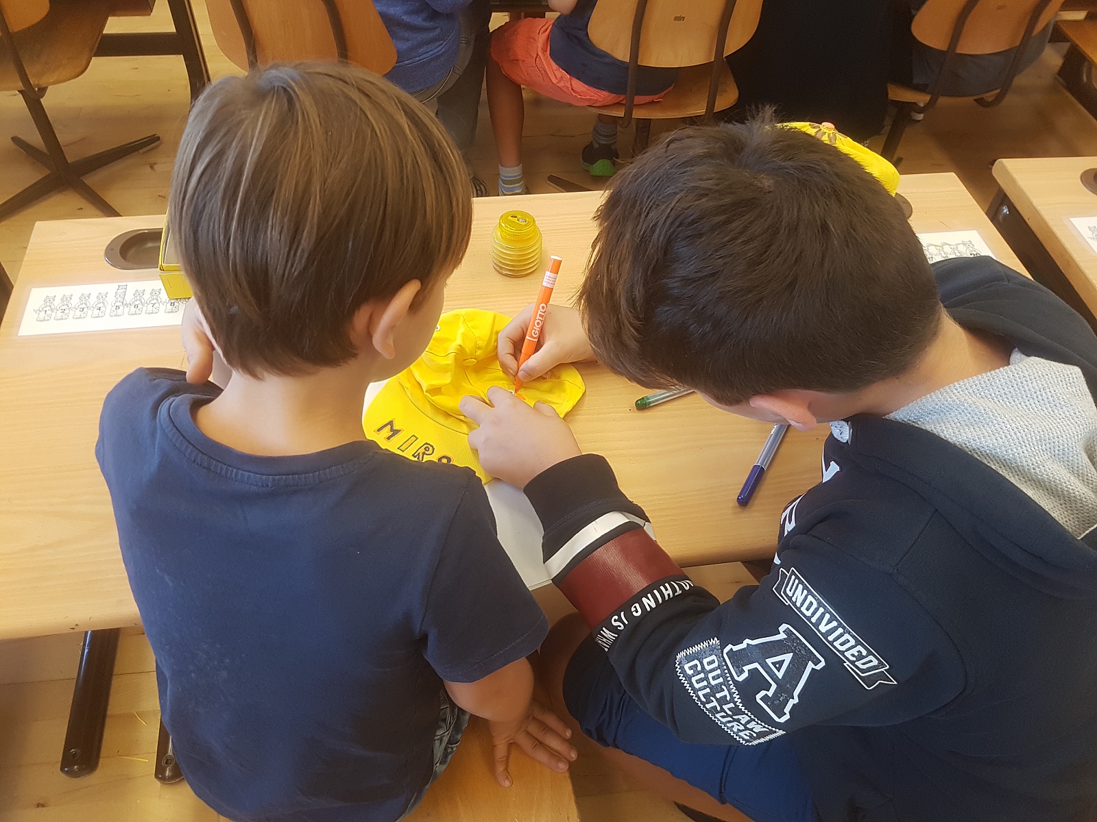 6a hilft 1a beim Mützendekorieren